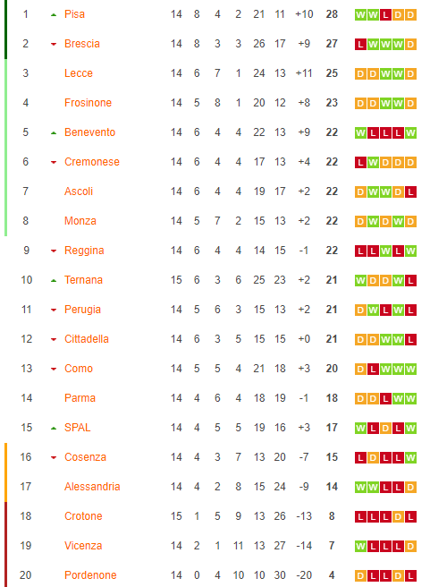 27/11/21 แพ้ ปิซ่า 0-1 (เหย้า) เซเรีย บี / ต่อ 0.5 ...เสีย