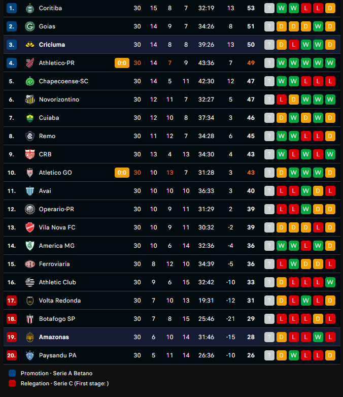 30/09/25 แพ้ ชาเปโคเอนเซ่ 1-3 (เหย้า) บราซิล ซีรี่ บี / เสมอ ... เสีย