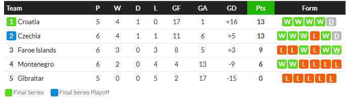 17/11/22 สาธารณรัฐเช็ก ชนะ หมู่เกาะแฟโร 5-0