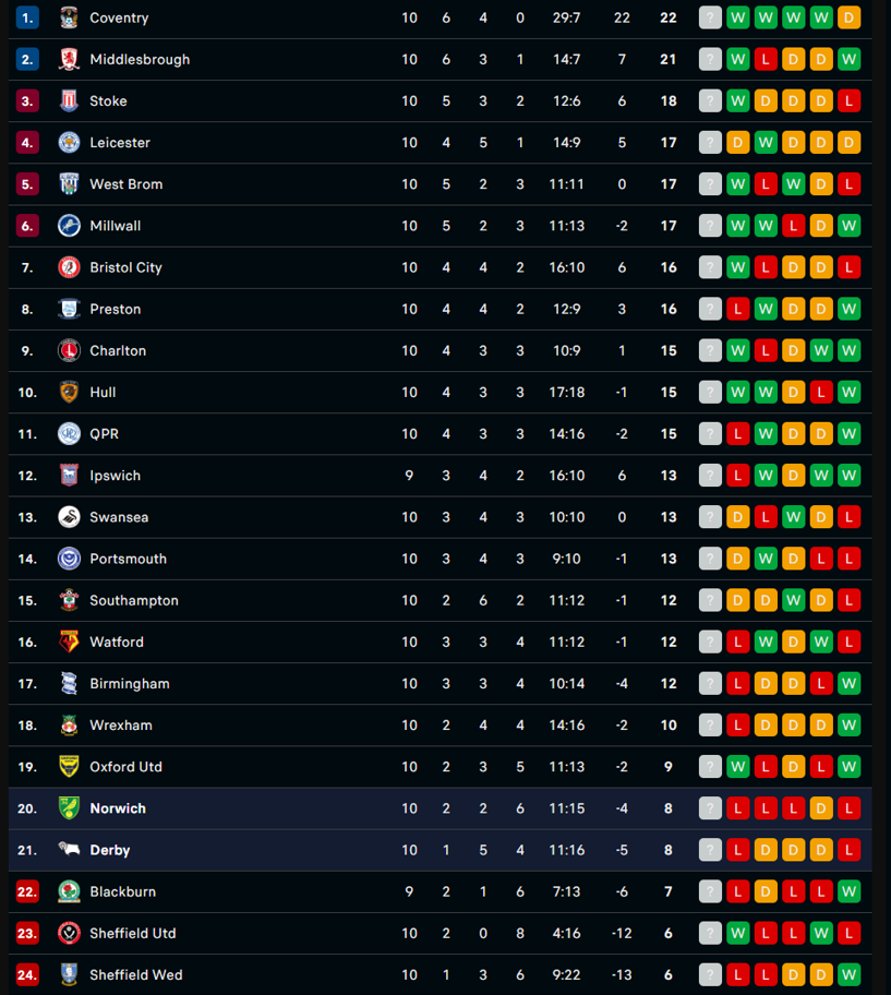 18/10/25 แพ้ บริสตอล ซิตี้ 0-1 (เหย้า) แชมเปี้ยนชิพ / เสมอ ... เสีย