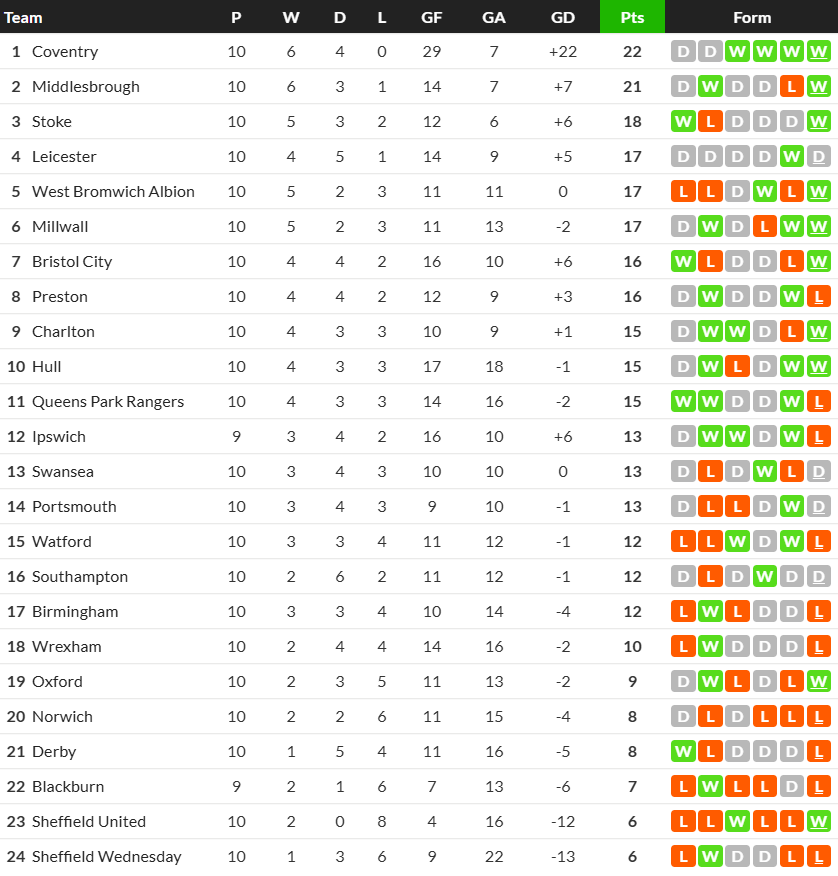 04/10/25 แพ้ มิลล์วอลล์ 0-3 (เยือน) แชมเปี้ยนชิพ / เสมอ ... เสีย