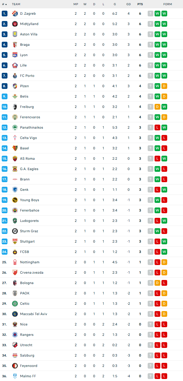 26/09/25 แพ้ เอฟซี ปอร์โต้ 0-1 (เหย้า) ยูโรป้า ลีก / รอง 0.75 ... เสียครึ่ง