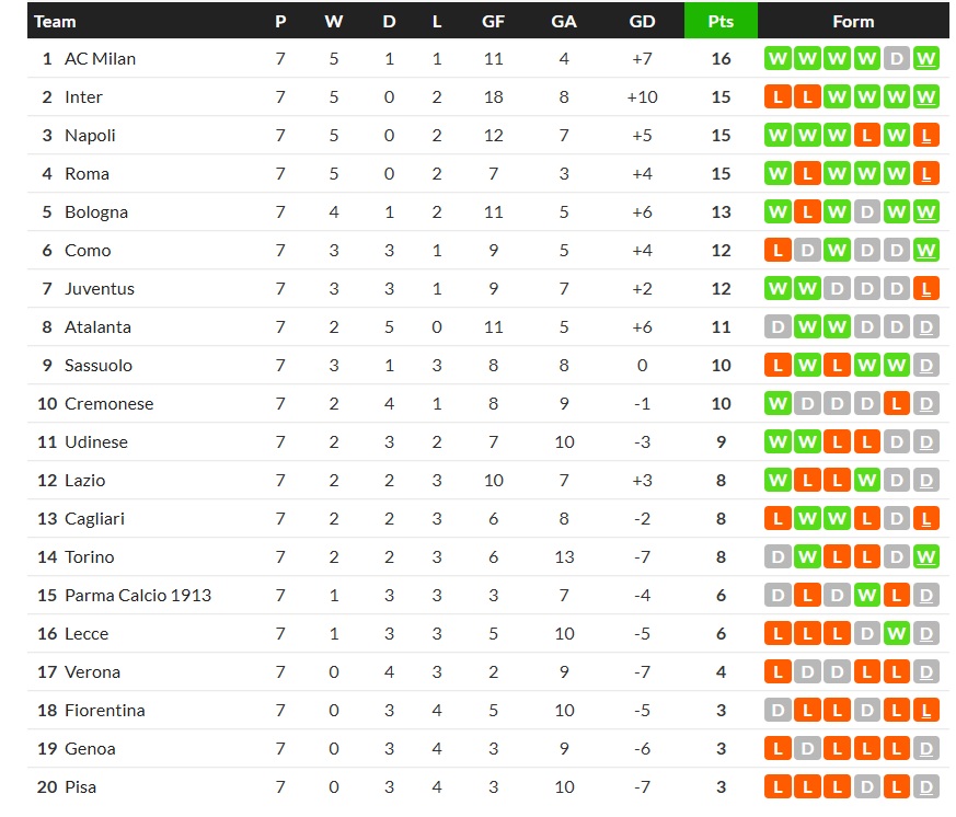 26/09/25 แพ้ โตริโน่ 0-1 (เยือน) โคปปา อิตาเลีย / รอง 0.5 ...เสีย