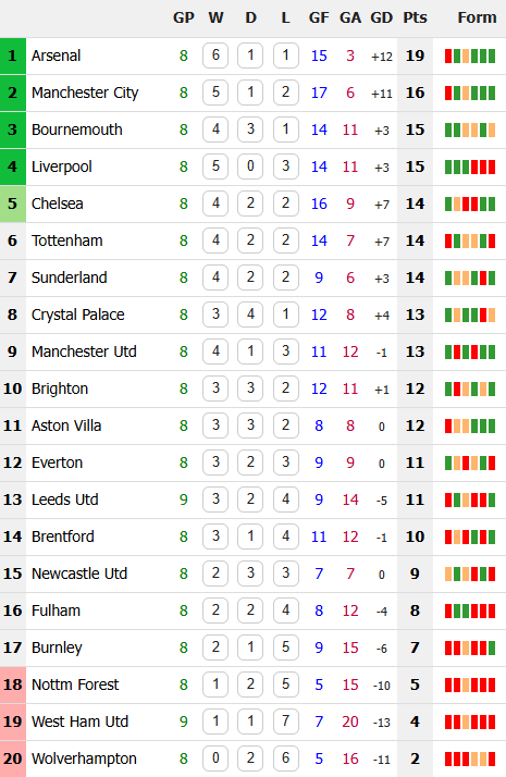 ฟอร์ม 6 นัดหลังสุดในลีก