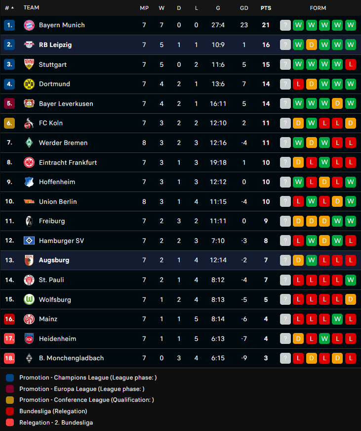 18/10/25 แพ้ เลเวอร์คูเซ่น 3-4 (เหย้า) บุนเดสลีก้า / เสมอ ... เสีย