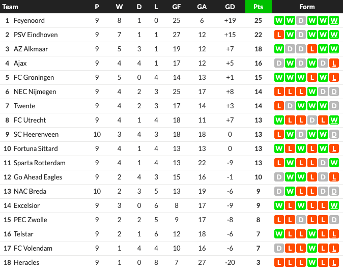 14/09/25 แพ้ สปาร์ต้า ร็อตเตอร์ดัม 0-1 (เหย้า) พรีเมียร์ดัตช์ / เสมอ ... เสีย