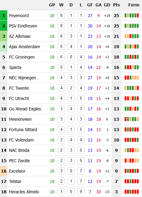 19/10/25 ชนะ โก อเฮ้ด อีเกิ้ลส์ 2-1 (เหย้า) พรีเมียร์ดัตช์ / ต่อ 2 ... เสีย