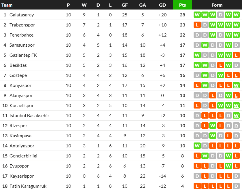 24/10/25 ชนะ สตุ๊ตการ์ท 1-0 (เหย้า) ยูโรป้า ลีก / ตุรกี ซูเปอร์ลีก / เสมอ ... ได้