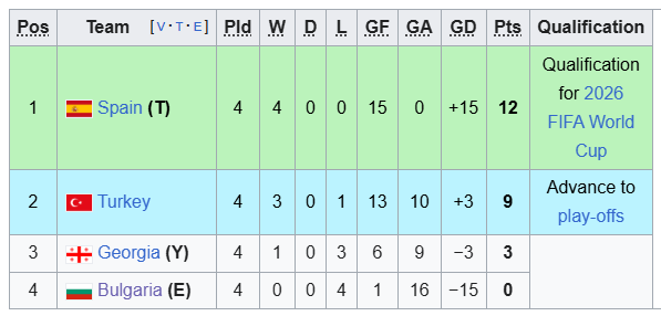 15/10/25 ชนะ จอร์เจีย 4-1 (เหย้า) คัดบอลโลก 2026 / ต่อ 1 ...ได้