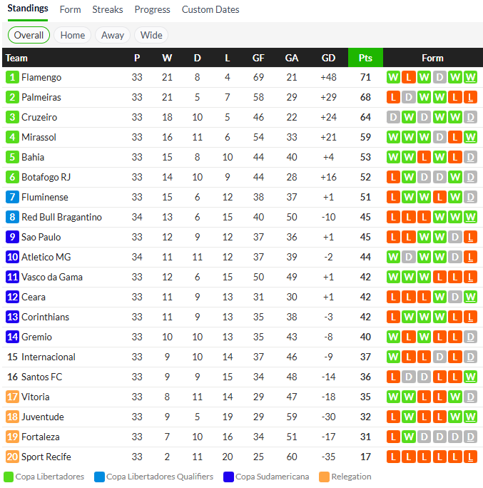 20/10/25 แพ้ มิราสซอล 0-3 (เยือน) บราซิล ซีรี่ เอ / รอง ปป ... เสีย