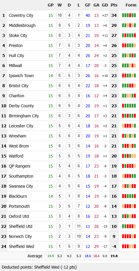 22/10/25 แพ้ เบอร์มิงแฮม 0-1 (เหย้า) แชมเปี้ยนชิพ / เสมอ ... เสีย