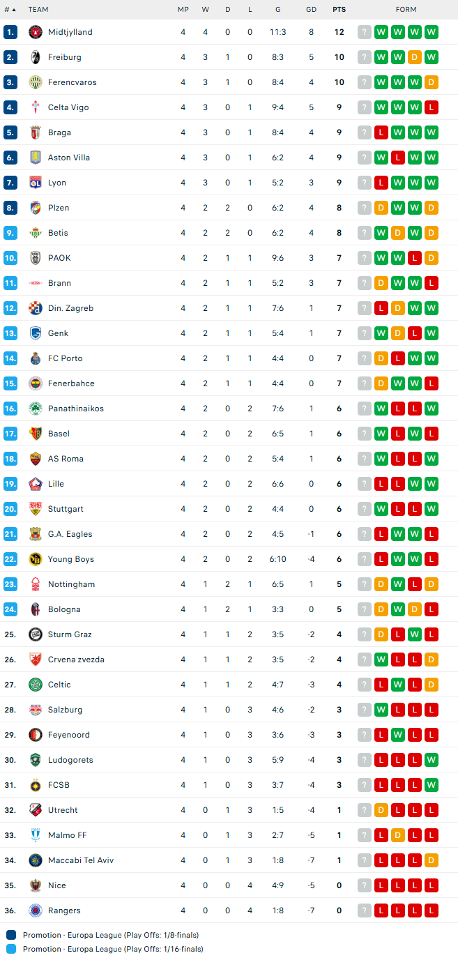 07/11/25 แพ้ พานาธิไนกอส 0-1 (เหย้า) ยูฟ่า ยูโรป้า ลีก / รอง 0.25 ... เสีย