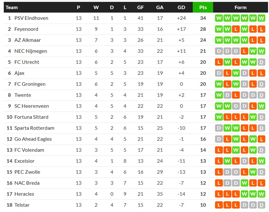 23/11/25 ชนะ อัล์คม่าร์ 3-1 (เหย้า) พรีเมียร์ดัตช์ / เสมอ ...ได้