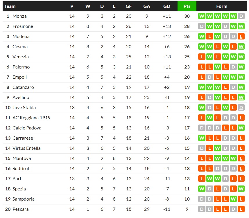 09/11/25 ชนะ ปาแลร์โม่ 1-0 (เหย้า) เซเรีย บี / เสมอ... ได้