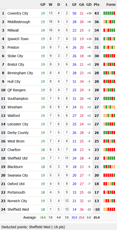 06/12/25 แพ้ มิดเดิ้ลสโบรช์ 1-4 (เหย้า) แชมเปี้ยนชิพ / เสมอ ... เสีย