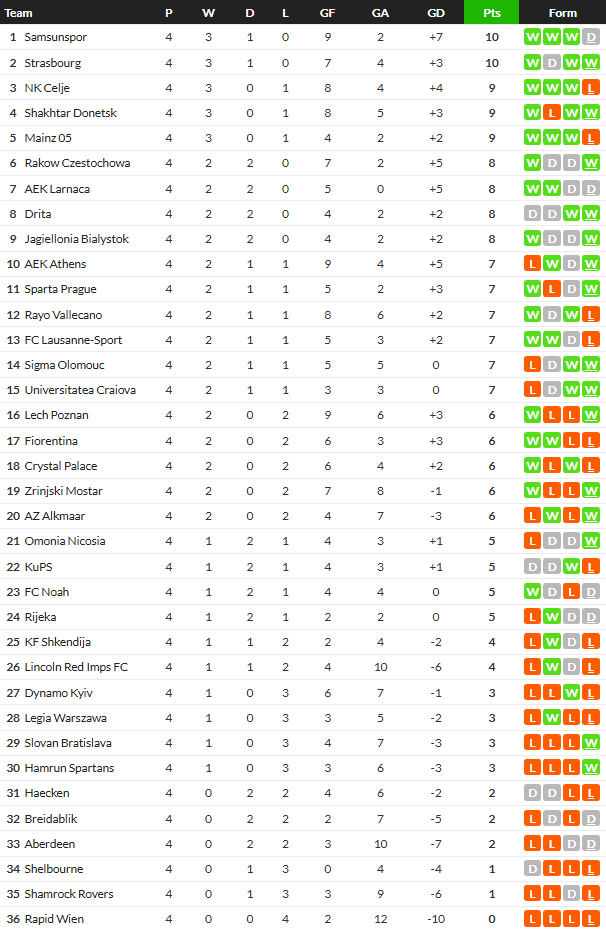 28/11/25 ชนะ ลีเกีย วอร์สซอว์ 1-0 (เยือน) คอนเฟอเรนซ์ ลีก / เสมอ ... ได้