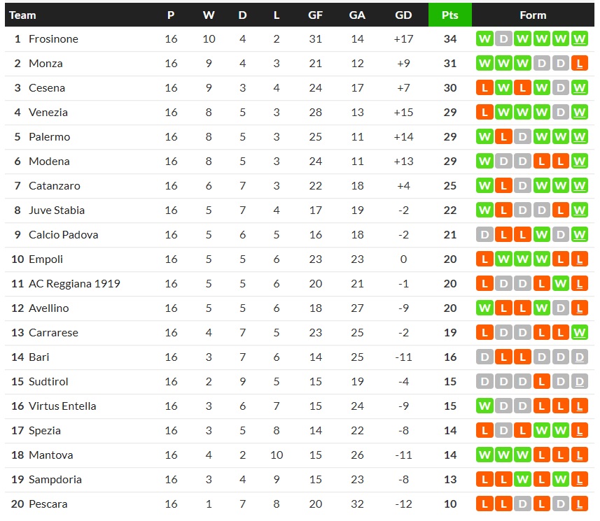 29/11/25 แพ้ เอ็มโปลี 0-5 (เยือน) เซเรีย บี / รอง ปป... เสีย